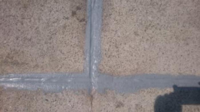 写真の黒く見えてるのがモルタルの伸縮目地です。