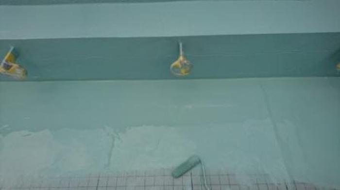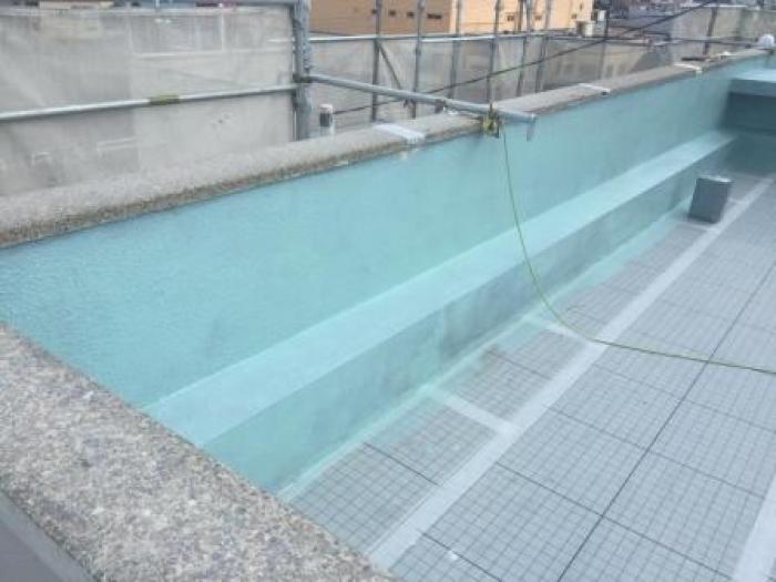 ウレタン防水の主材の完了の状態です。